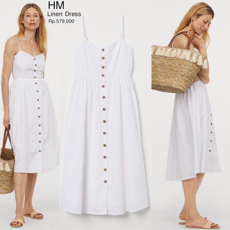 Hnm Hm H M Dress White Linen Fesyen Wanita Pakaian Wanita Gaun Rok Di Carousell
