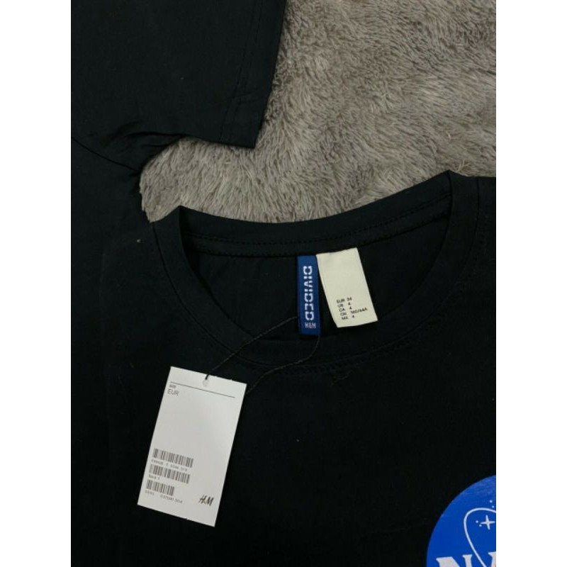 T Shirt Kaos H M Nasa Printed Design Logo Black Premium Like Original Shopee Indonesia