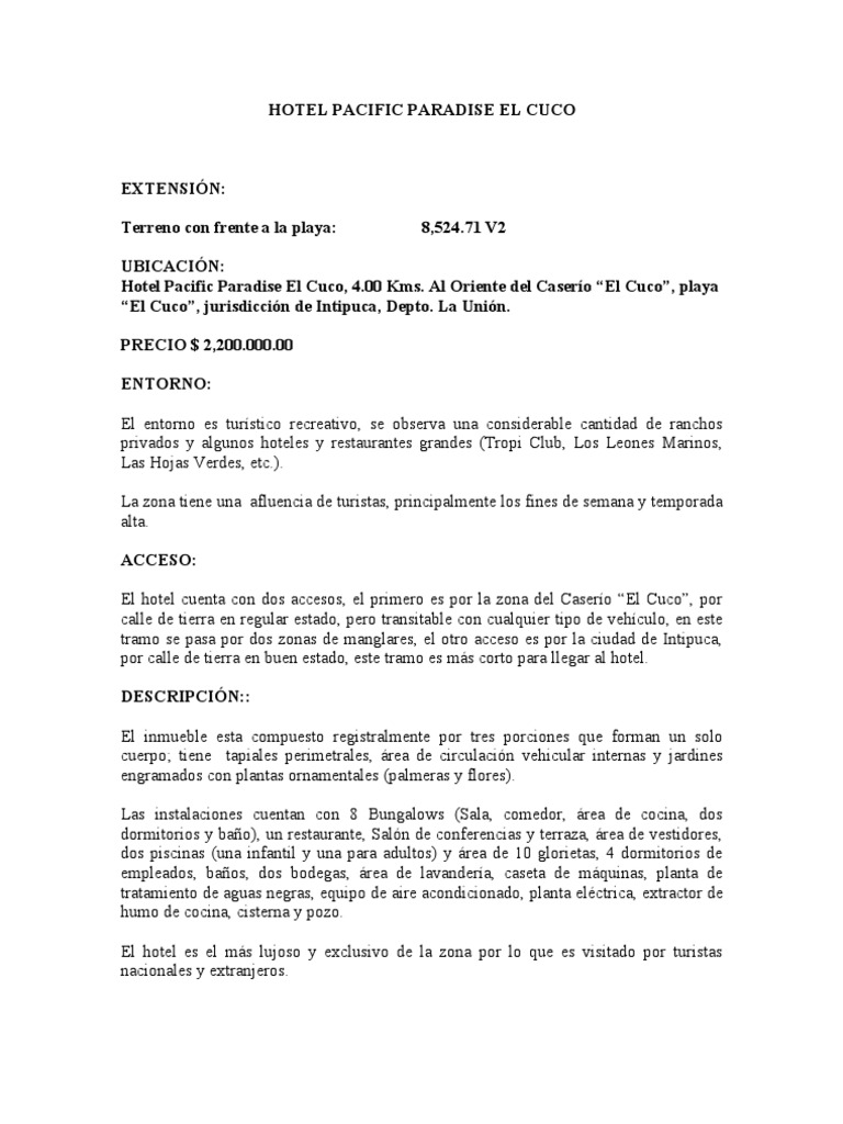 Venta De Hotel En Playa El Cuco San Miguel Hotel Turismo Y Ocio